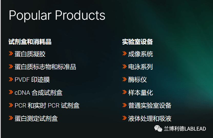 Bio-Rad 是全球五大生命科学公司之一,为细胞生物学、基因表达、蛋白质纯化、蛋白定量、药物发现和生产、食品安全和科学教育领域提供仪器、软件、消耗品、试剂和相关内容。我们的产品和解决方案基于分离、纯化、鉴定、分析以及扩增生物材料(例如抗体、蛋白质、核酸、细胞和细菌)的技术。