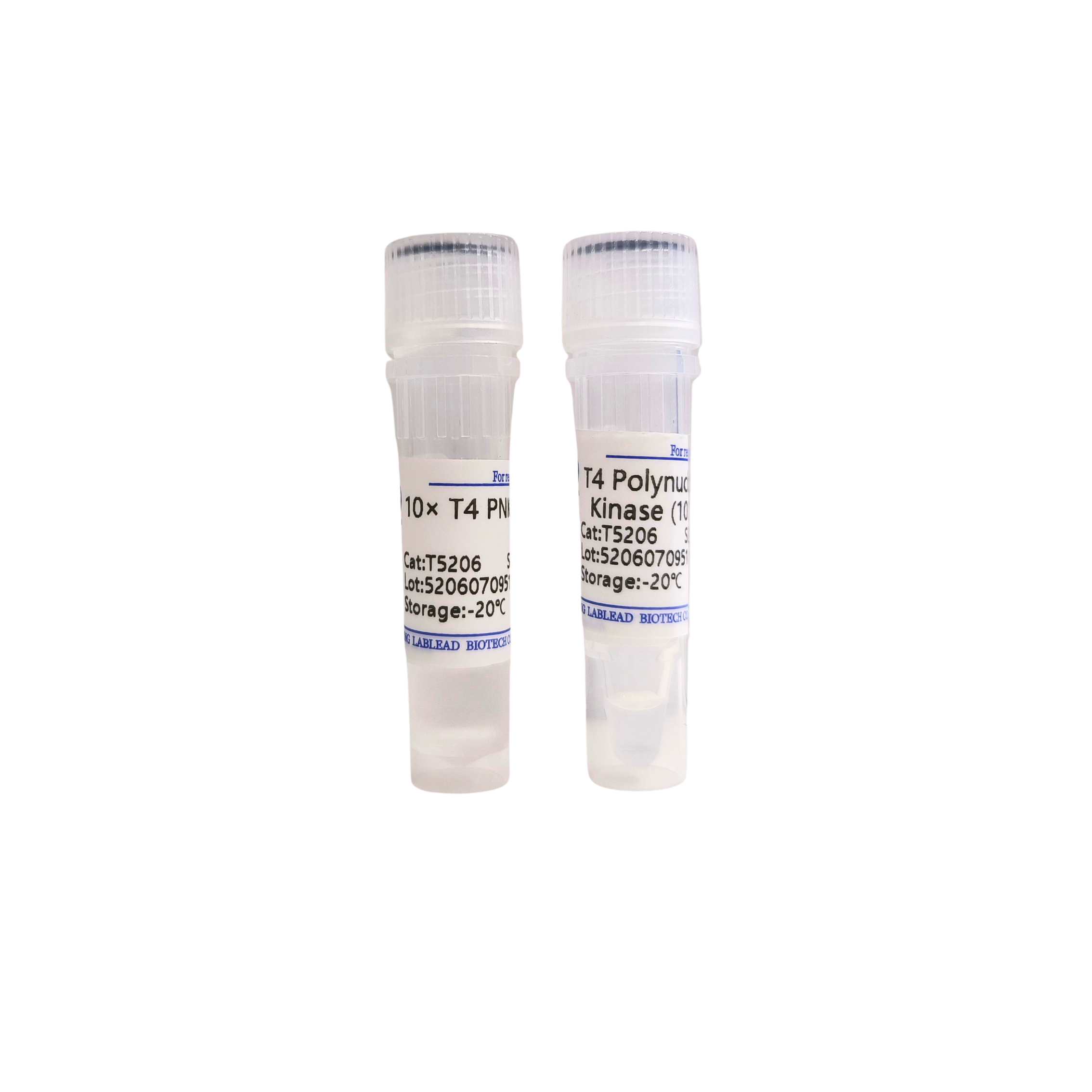 T4 Polynucleotide Kinase(简称 T4 PNK),中文名称 T4 多聚核苷酸激酶,是一种多聚核苷酸5'-羧基激酶,能够催化ATP的 γ 磷酸基团转移到寡核苷酸链(双链或单链DNA 或者 RNA)或3'-单磷酸核苷上的5'-羟基末端,且该反应过程可逆。此外,T4 PNK还具有3'磷酸酶活性,可以将3'-磷酸基团从寡核苷酸的3'-磷酸末端、脱氧3'-单磷酸核苷和脱氧3'-二磷酸核苷上水解掉。