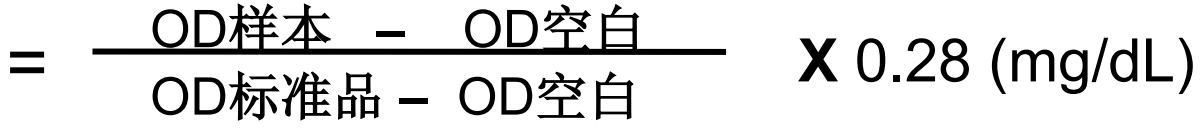 注: (1) 若样品的OD值高于标准品的OD值,需用蒸馏水稀释样品并重复检测。(2) 不必绘制校准曲线,因为所提供的标准品的Pi浓度在检测范围内。(3)若磷酸盐浓度过高(>100 mM)或诸如蛋白质或金属一类的物质浓度高,则可能出现沉淀,在这种情况下,需用蒸馏水稀释样品并重复检测。
