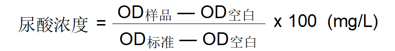 在人和灵长类中,尿酸是嘌呤代谢的终产物。它由黄嘌呤氧化酶催化黄嘌呤和雌黄嘌呤氧化生成,通过尿液排出。尿酸血清水平提高、血内高尿酸与胰岛素抵抗、心血管疾病和痛风有关。导致血内高尿酸的机制通常和尿酸产生生活或排尿减少有关。升高的血清尿酸可用作肾脏疾病的标记物。本试剂盒可直接用于血清检测,不需要预处理。测试原理是利用反应试剂与尿酸生成有色复合物的特性,其比色(590nm)产物与血清中尿酸的含量对应成正比。检测范围在3 - 300 mg/L 。