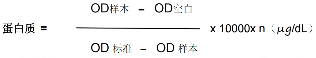 3. 在室温下培养10分钟,然后在600 nm处读取吸光度,注意:如果特定样品的OD标准-OD样本低于0.05,用等体积的水稀释样品,然后重复测定。将结果乘以稀释倍数。低标准信号是由于与尿液中其他分子的干扰,稀释度会降低干扰可以正确测量蛋白质水平。