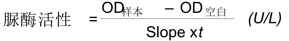 其中 OD样本和 OD空白是样品和样品空白(酶缓冲液)测得的 OD 值。 t 是标准脲酶测定的孵育时间(10 分钟)。如果脲酶活性高于 25 U/L,在缓冲液中稀释酶,重复测定并将计算的活性乘以稀释因子。