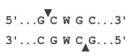 ApeKI来源于超嗜热需氧古生菌(Aeropyrum pernix) K1,属于Type IIP型限制酶,识别并切割G/CWGC序列,形成3碱基突出的粘性末端。ApeKI是基因组简化测序(genotyping-by-sequencing,GBS)的首选酶之一,此外,还广泛应用于动植物遗传研究、群体进化分析及功能基因定位等领域。