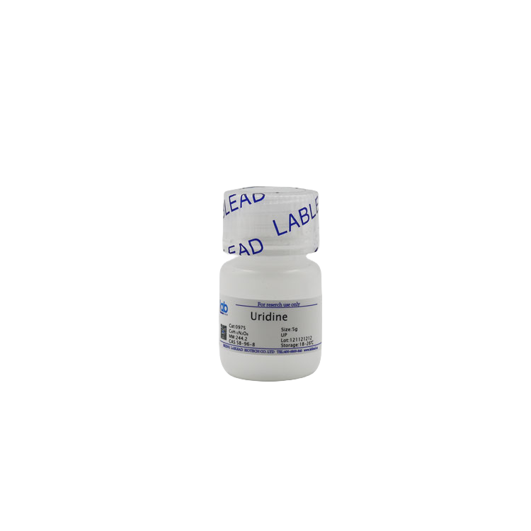 尿苷是一种药物,如抗巨型红血球贫血, 本品仅用于科研实验。尿苷,白色针状结晶或粉末。无气味,味稍甜而微辛。系核苷类的一种。能溶于水,微溶于稀醇,不溶于无水乙醇。本品可用于巨型红血球贫血,也可与其他核苷、碱基合用于治疗肝、脑血管及心血管等疾患。