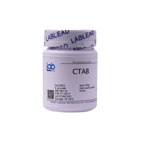 CTAB是一种阳离子去污剂,具有从低离子强度的溶液中沉淀核酸和酸性多聚糖的特性,在这种条件下,蛋白质和中性多聚糖仍留在溶液里,在高离子强度的溶液里,能够与蛋白质和大多数酸性多聚糖以外的多聚糖形成复合物,只是不能沉淀核酸,从而将核酸分离出来。
