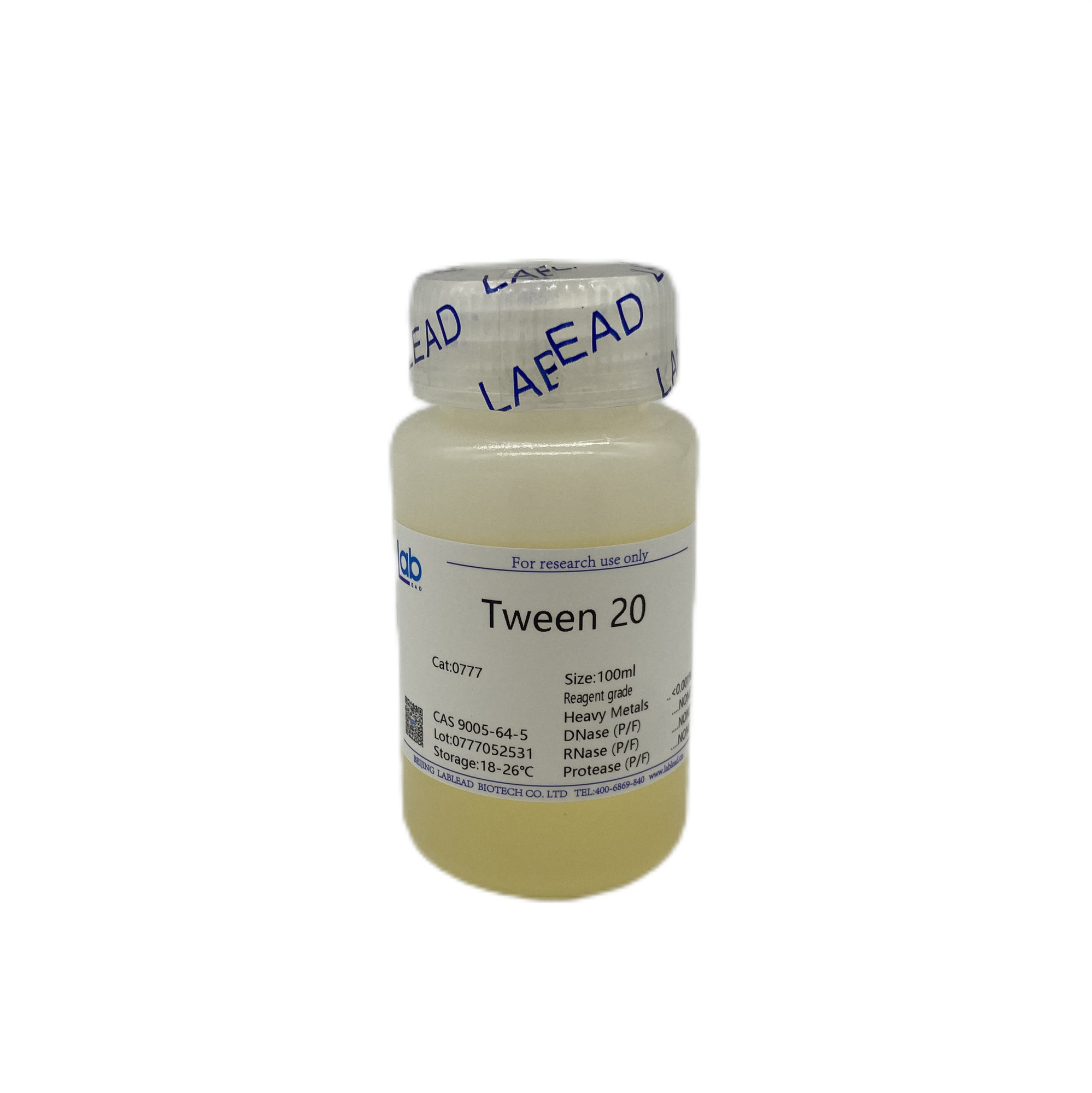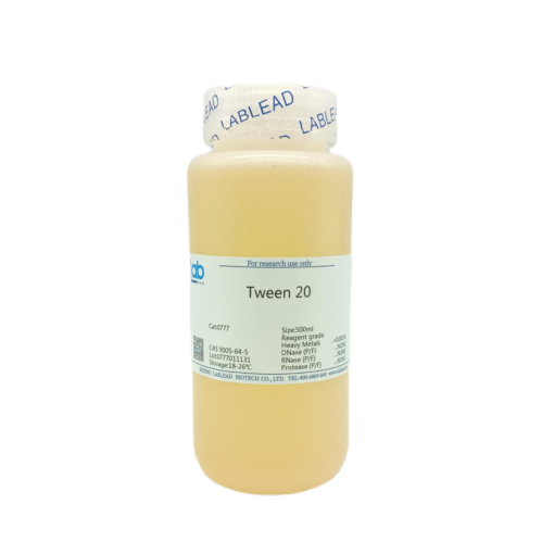 吐温-20(Tween-20),又称聚山梨酯-20(Polysorbate-20),一种来源于山梨聚糖类酯的吐温类非离子型表面活性剂,易混溶于水,广泛应用于生物化学研究中,包括1)一种乳化剂用以制备稳定的油包水型乳状液,尤其是用在制药业;2)膜结合蛋白提取实验中,常以2%浓度去除膜周边蛋白;3)基于膜检测的免疫学实验中,常以0.05%的浓度用作一种封闭剂;4)还可以0.005~0.5%的浓度用于裂解哺乳动物细胞。