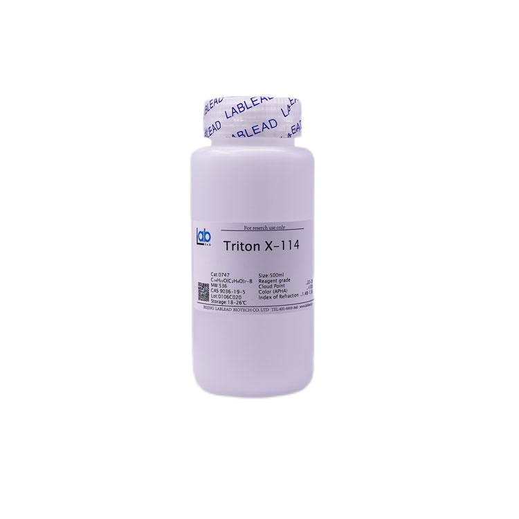 Triton X-114,中文名字曲拉通X-114,一种非离子表面活性剂。其浊点为23℃,在低于该温度时,Triton X-114能与水互溶;当高于该温度时,则分离成水相和去污剂相,基于该特点,Triton-X114在生物化学实验中常用于水相蛋白和脂蛋白的分离,如膜蛋白的提取等。