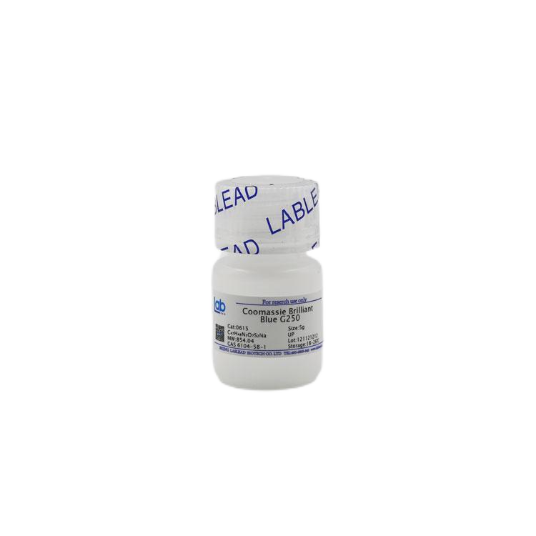 考马斯亮蓝G250已用于测定尿蛋白浓度。 用于SDS-PAGE(十二烷基硫酸钠聚丙烯酰胺凝胶电泳)后的蛋白质条带检测。 用作P2X7R(嘌呤能受体)拮抗剂。