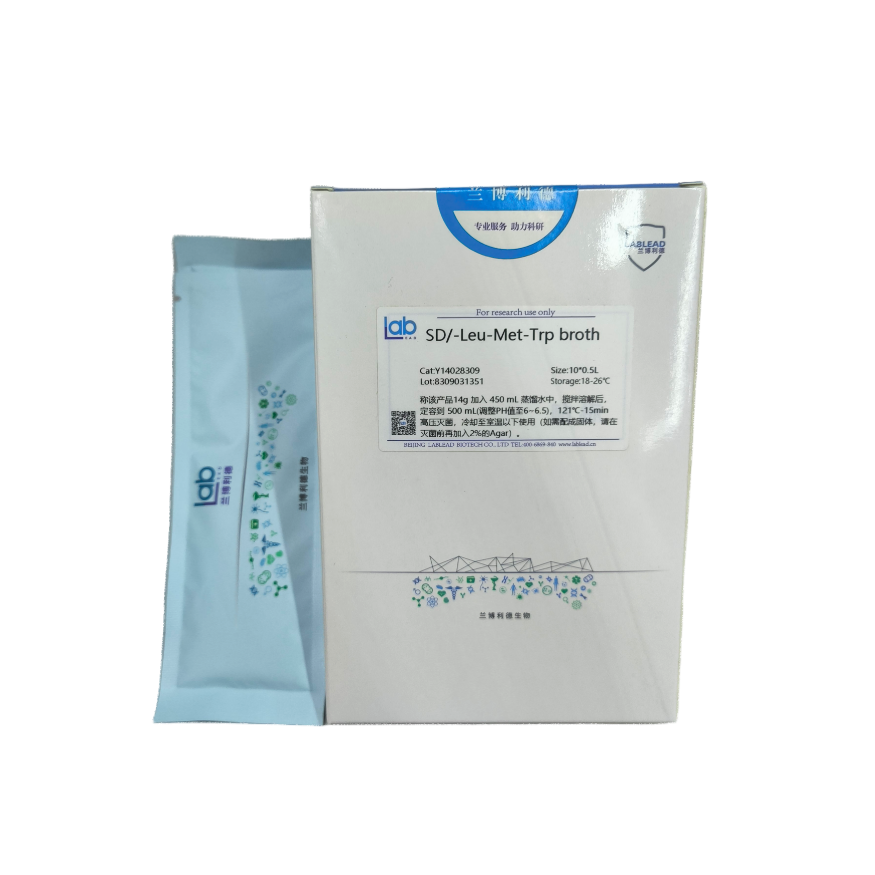 储存条件: RT 保存产品简介:酵母SD 培养基(Synthetic Dextrose Minimal Medium/ SD Minimal Medium/ SD-Dropout Medium)又称酵母基础培养基或酿酒酵母营养缺陷型筛选培养基,广泛应用于酵母互作和酵母离子耐受,功能互补及各种野生型酵母,部分突变型酵母的鉴定、筛选和培养试验。酵母SD 培养基成分包括YNB(含硫酸铵,不含氨基酸)、葡...